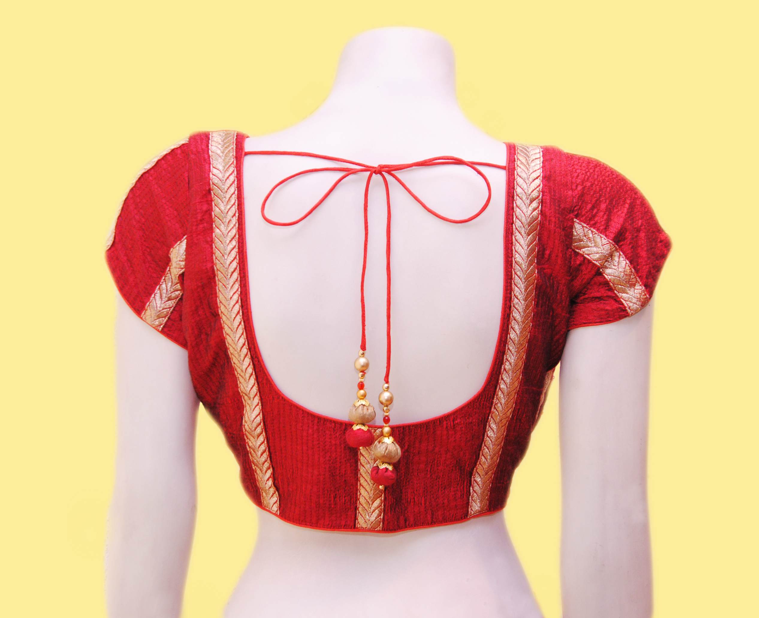 Redish Maroon pure raw silk based cup fitted blouse with jari border in sleeves & back.